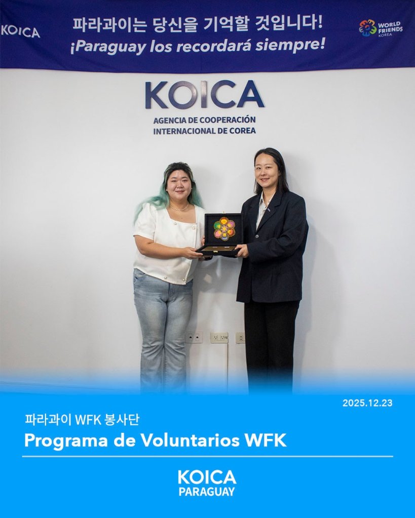 코이카 파라과이 사무소는 임기 동안 단원이 보여준 헌신과 노력에 감사패를 전달하였습니다. 또한, 제자들이 사랑과 감사를 담아 전하는 감동적인 영상 헌정을 통해 기념의 순간을 함께할 수 있는 기회를 가졌습니다.
