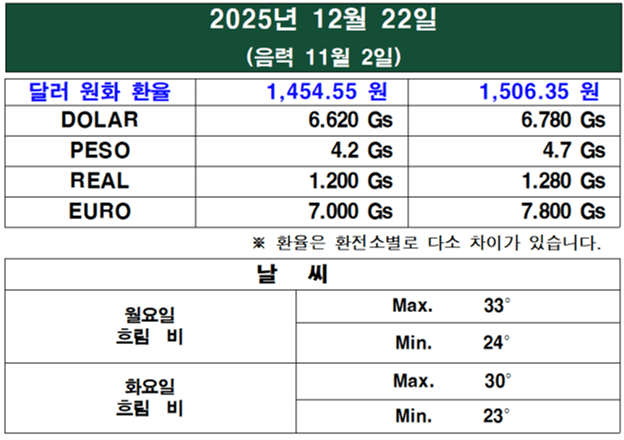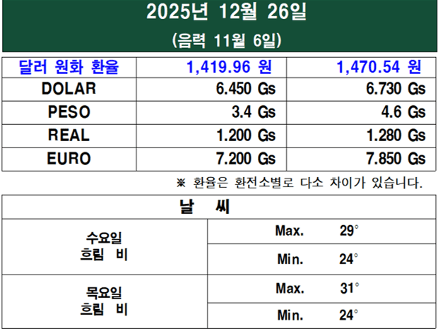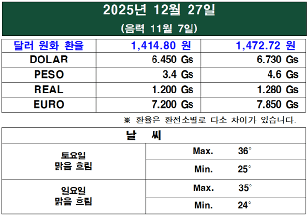 그동안 파라과이를 위해 최선을 다해 주심에 감사드리며, 향후에도 건승하시기를 기원합니다.