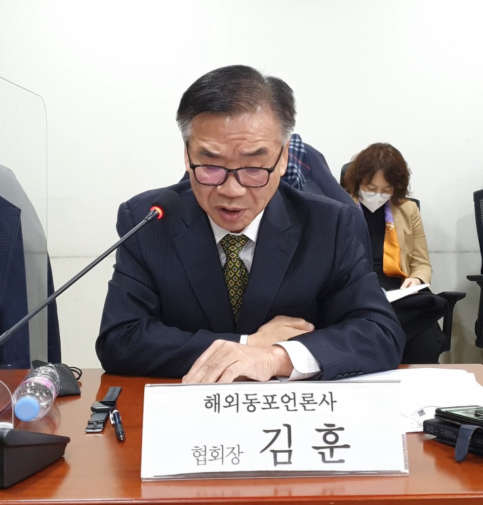 토론자로 참여한 (사)해외동포언론사협회 김훈 회장은 “그동안, 재외동포 관련 세미나 등이 국회 등에서 자주 개최되면서 국내 학자들 중심으로 마치 재외동포 전체를 대표하듯 대부분 재외동포청 설립을 당연시하면서 해외동포 여론과는 동떨어진 발표들을 내세워 무척 유감이었는데, 다행히도 이번에는 해외동포 사회의 여론을 전달하고 있는 동포 언론을 토론에 초청해 기회를 주신 것에 감사드립니다.