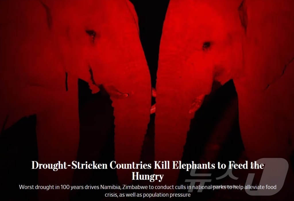 나미비아 등 남아프리카 국가들이 지구 온난화로 인한 극심한 가뭄으로 식량난을 겪자 코끼리 등 야생 동물들을 잡아 식량난을 해결하고 있다고 월스트리트저널이 6일(현지시간) 보도했다.