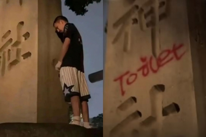 야스쿠니 신사 돌기둥에 스프레이로 낙서하고 방뇨해 중국에서 ‘애국자’ 취급을 받은 중국인 남성이 중국 당국에 체포된 것으로 나타났다.