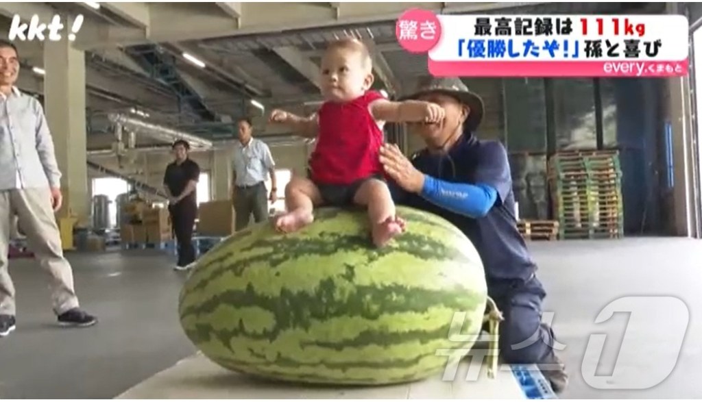 구마모토 현지 매체인 구마니치신문에 따르면 구마모토시 기타구 우에키쵸 원예 집송 센터에서 열린 점보 수박 품평회에서 무게 111㎏, 둘레 169㎝, 길이 89㎝의 수박을 키운 기쿠가와 토시노리(67)가 우승을 거머쥐었다.