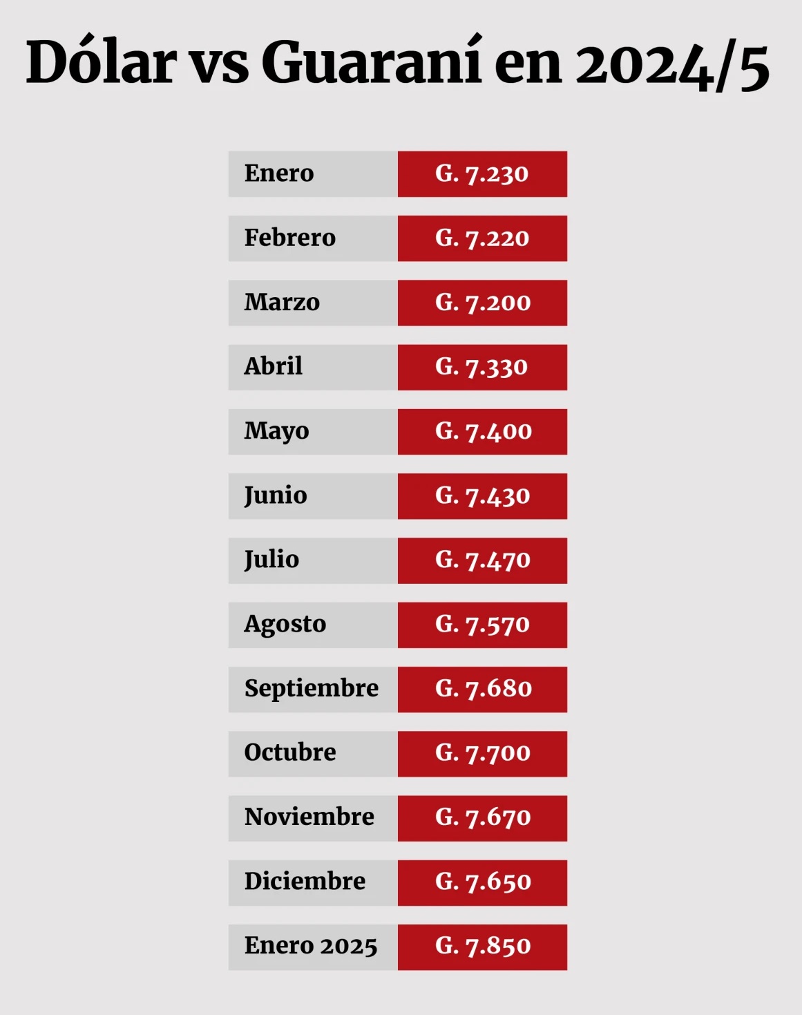 그레고리오 마요르 협회장은 2024년 달러 환율이 예년과 달리 지속적인 상승세를 보였으며, 이는 브라질 남부 지역의 홍수와 파라과이 강 수위 감소 등 외부 요인과 함께 파라과이 경제 내부 요인이 복합적으로 작용한 결과라고 분석했다.
