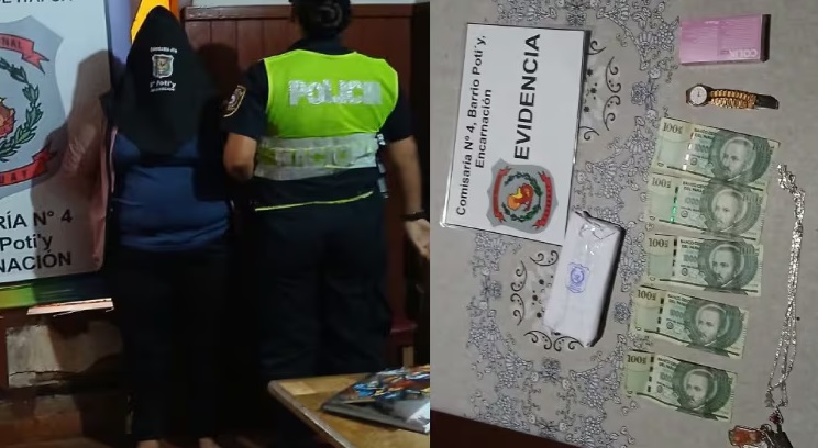 피의자는 45세의 리디아 로사 빠이바 페레이라로, 4번 경찰서에서 체포되었다. 그녀는 체포된 남성, 34세의 까를로스 알베르또 젤라다를 석방시키기 위해 경찰관에게 150만 과라니를 제안한 혐의를 받고 있다.