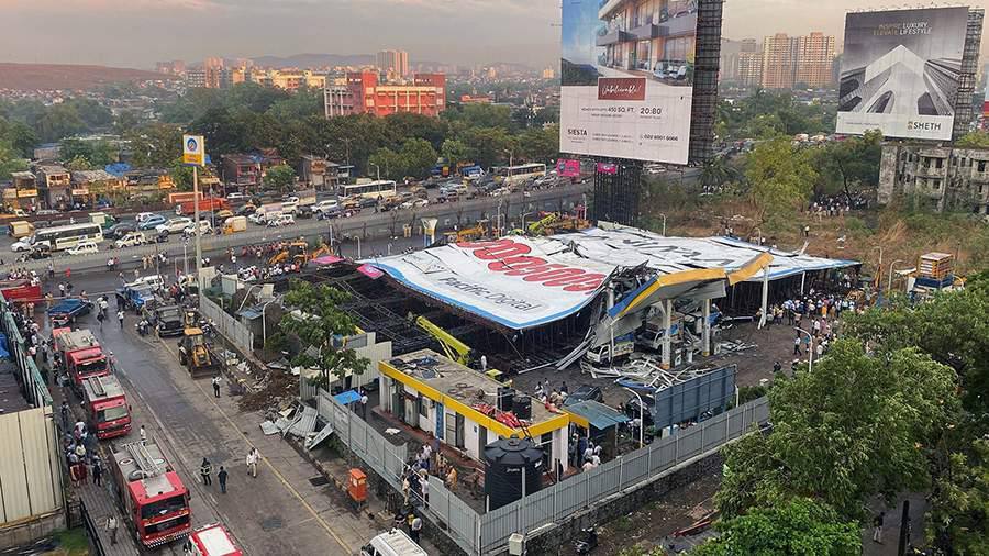 해당 광고판은 전날인 13일 뭄바이주 가트코파르 동부 교외의 혼잡한 도로 옆 주유소 위로 떨어졌다. 경찰에 따르면 광고판의 크기는 가로 70m, 세로 50m에 달하며 무게는 250톤에 이르는 것으로 전해졌다.