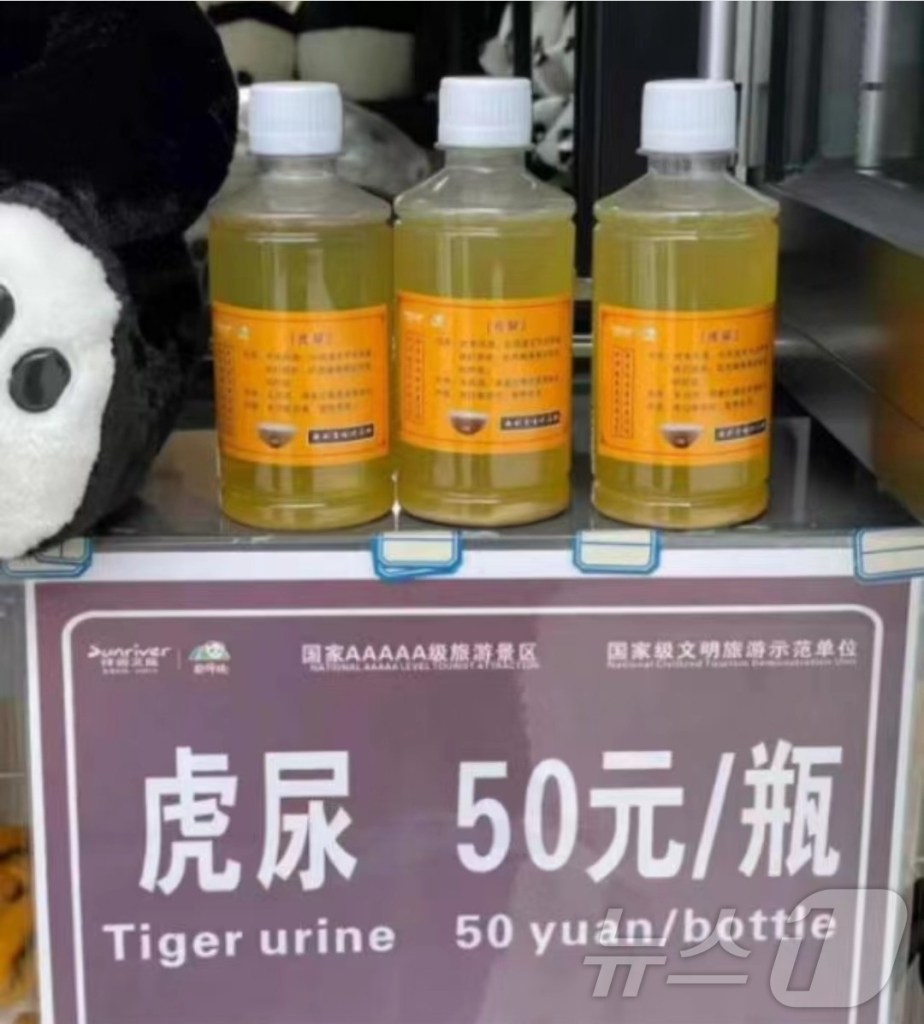 앞서 중국 샤오훙슈 등 SNS에서는 비펑샤 야생동물원과 연관된 여행사에서 호랑이 오줌을 50위안(약 1만 원)에 판매한다는 사진이 확산해 논란이 일었다. 호랑이 오줌이 담긴 병에는 호랑이 오줌이 류머티즘, 타박상, 관절염, 근육통 등에 효과가 있다고 언급하고 있다.