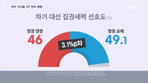 ‘정권 연장’ 46% vs ‘정권 교체’ 49.1%…2주 연속 ‘팽팽’