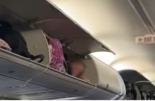 사우스트웨스트항공 여객기 객실에서 찍힌 해당 영상에는 한 여성이 좌석 위 짐칸에 올라가 자신의 손으로 머리를 베고 태연하게 드러누워 있는 모습이 담겼다.