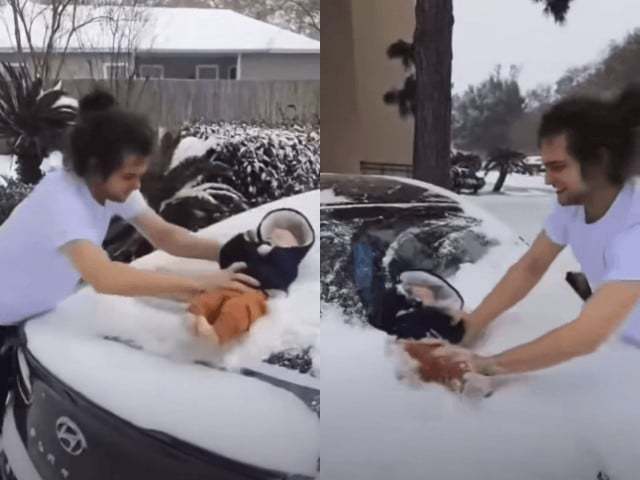 텍사스 현지 매체인 KFDM에 따르면 포트아서 출신의 25살 남성은 지난주 텍사스에 눈 폭풍이 몰아친 후 현대 엘란트라의 앞 유리에 쌓인 눈을 아기 몸통으로 쓱쓱 밀어냈다. 아기를 와이퍼로 사용한 이 영상에서 남성이 킥킥거리며 웃는 소리도 녹음됐다. 이 영상은 현재 내린 상태다.