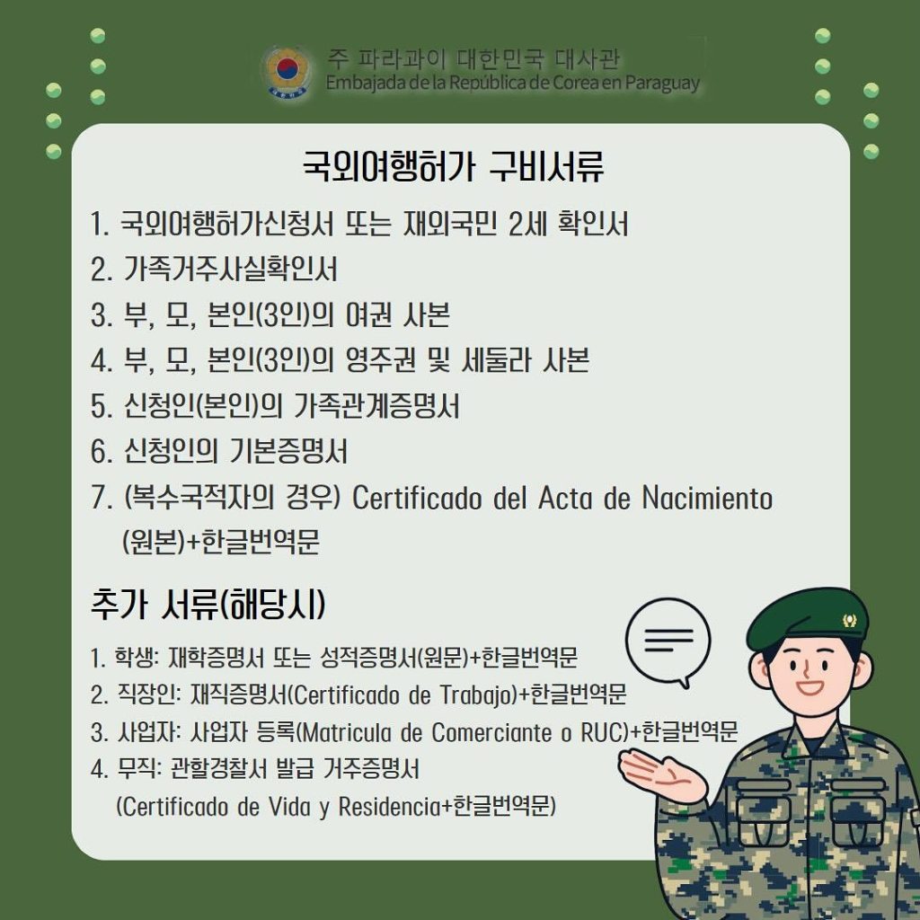 더 궁금하신 점이 있으시면 paraguay@mofa.go.kr로 문의주십시요.