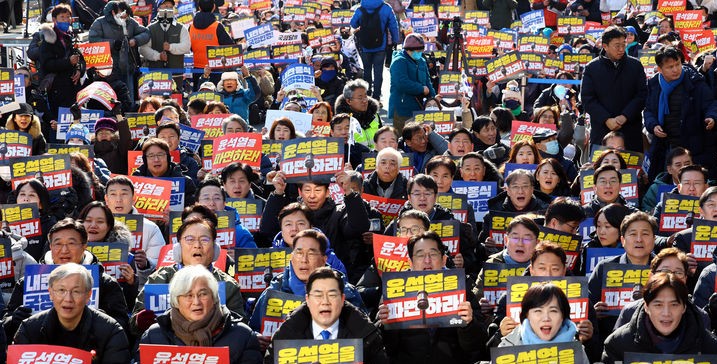 한편 민주당은 이날 오후 서울 종로구 안국역 일대에서 윤 대통령 파면을 촉구하는 집회를 개최했다. 박찬대 원내대표를 비롯한 지도부를 포함해 소속 의원 80명과 전국 당원 등 민주당 추산 3만5000명이 참석했다.