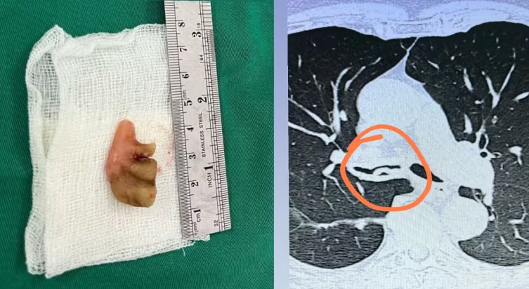 INERAM의 폐 전문의인 카를로스 모리니고 박사는 C9N 채널과의 인터뷰에서 시간이 지남에 따라 기관지가 이 이물질을 감싸 일종의 염증성 종양을 형성했다고 설명했다.