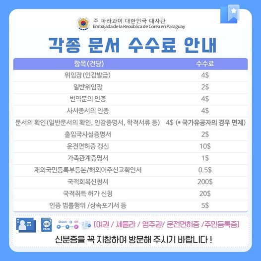 각종 문서 발급 수수료를 안내해드리오니 착오없으시길 바랍니다.