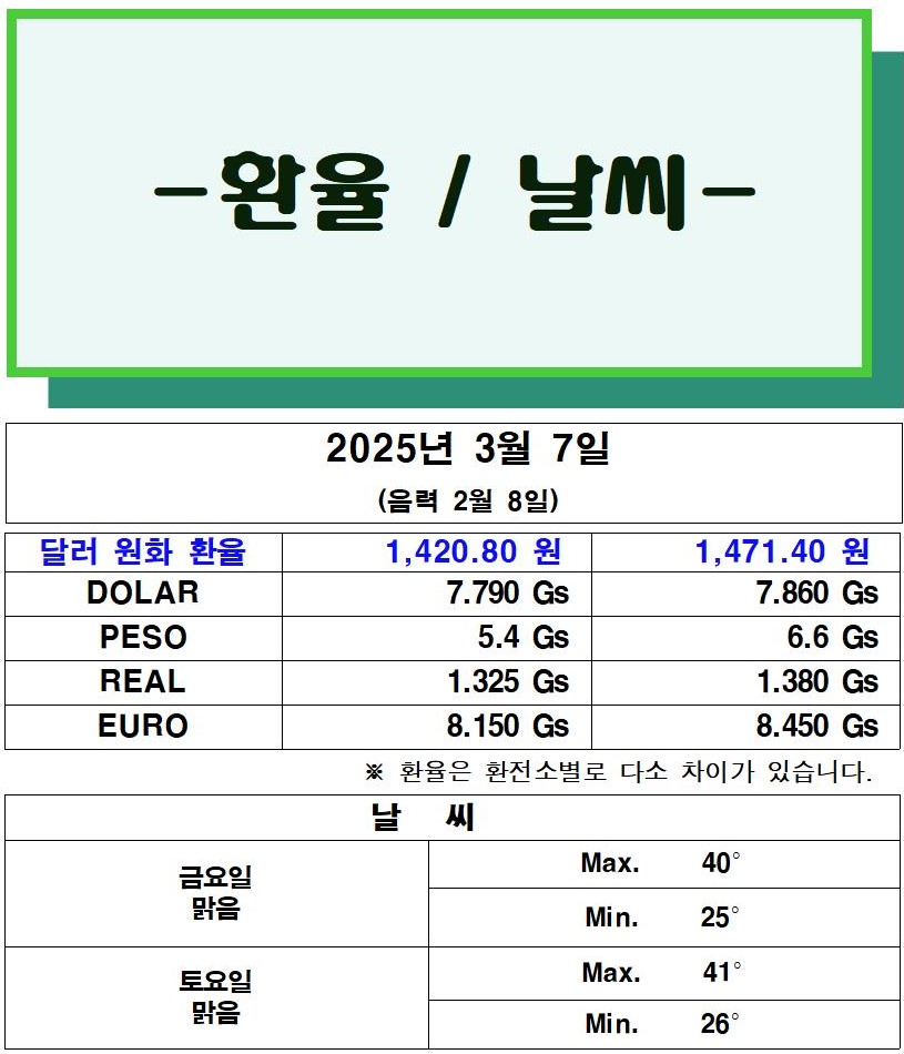 파라과이 기상청은 “매우 더운 날씨”를 예보했으며, 폭염으로 인해 가정용 냉방 장치 사용이 급증하면서 전력 수요가 크게 증가했다. ANDE는 “기온 39°C, 체감 온도 43°C를 기록한 오후 2시 11분에 순간 전력 수요가 5,122MW에 도달하여 국가 통합 전력 시스템(SIN)의 새로운 기록을 세웠다”고 밝혔다.