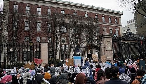 ▲뉴욕 컬럼비아대 앞 친팔레스타인 항의시위