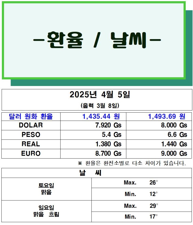 한편, 이번 주(4월 첫째 주)에는 동부 지역과 차코 일부에서 비교적 풍부한 강수량이 예상된다. 연구소는 일부 지역에서 50mm 이상의 비가 내려 토양 수분이 충전되며 농작물 생육에 긍정적인 영향을 줄 가능성을 언급했다. 그러나 모든 지역이 혜택을 받는 것은 아니며, 여전히 강수량이 부족한 곳도 있을 것으로 보인다.