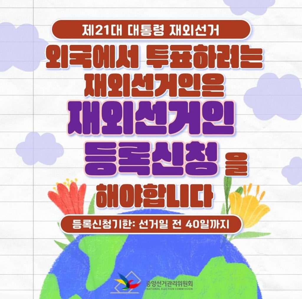 등록기간: 4.4일부터 선거일 전 40일 (선거일 추후 안내 예정)