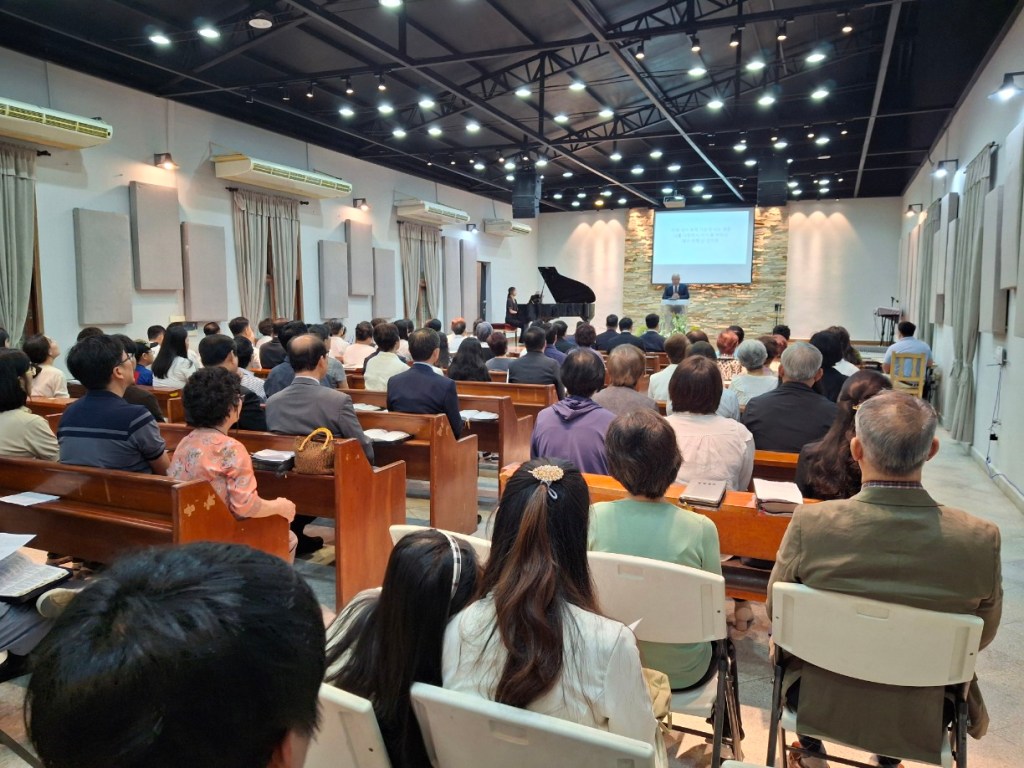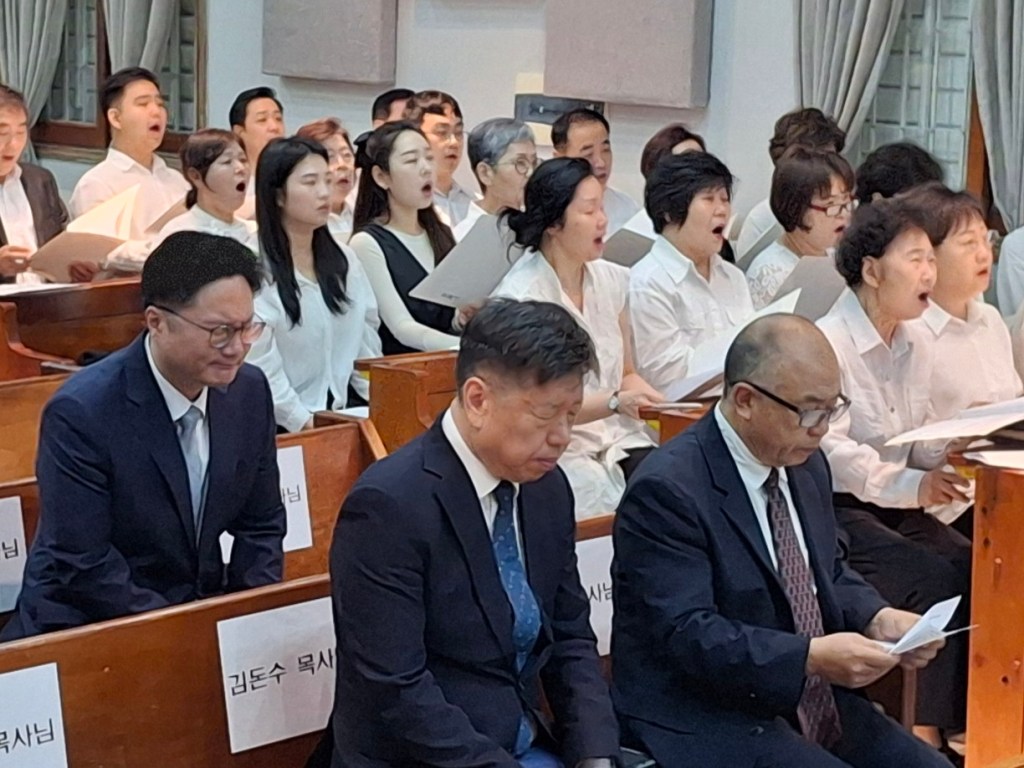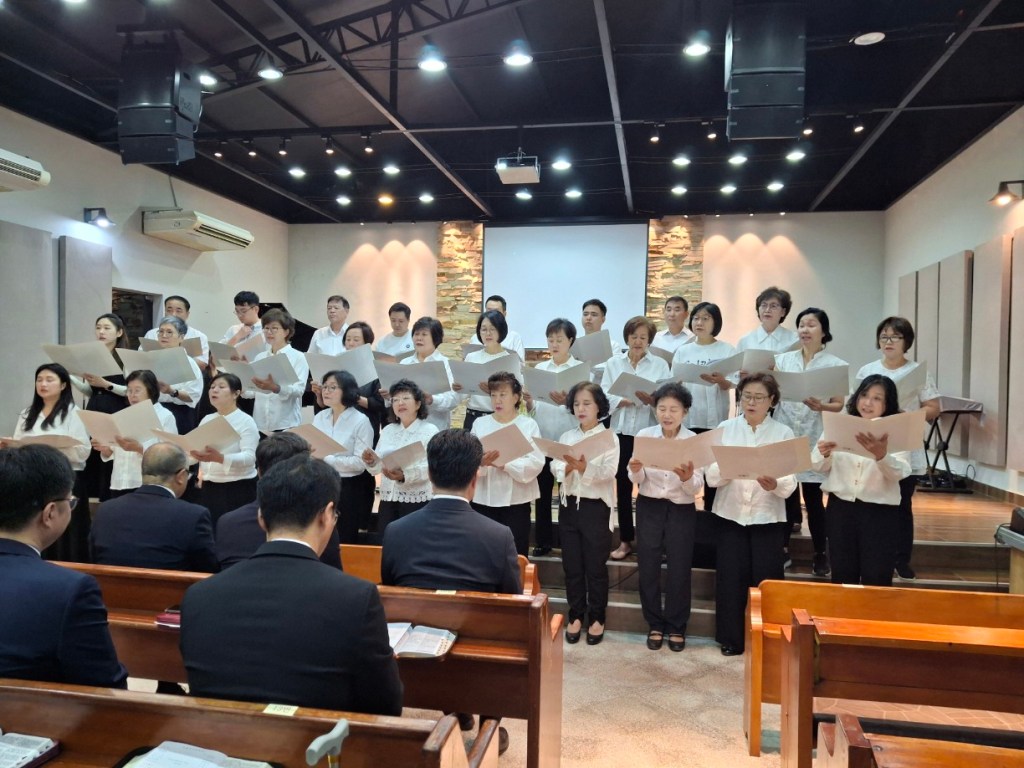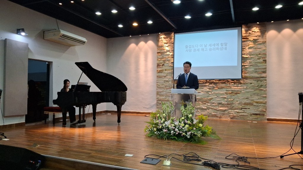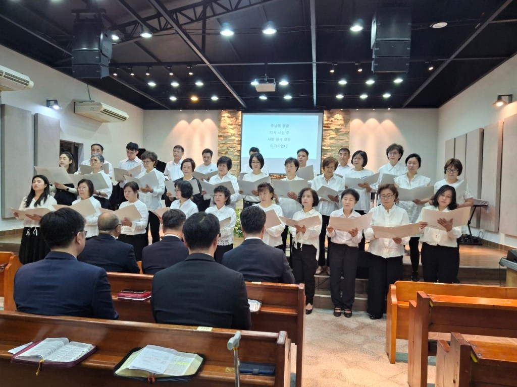 인도자의 광고 후 “찬송 즐겁도다 이날” 을 다 같이 힘차게 부르고 한인연합교회 하흥석 목사님의 간절한 축도로 2025년 부활절교회 새벽연합 예배를 모두 마치였다.
