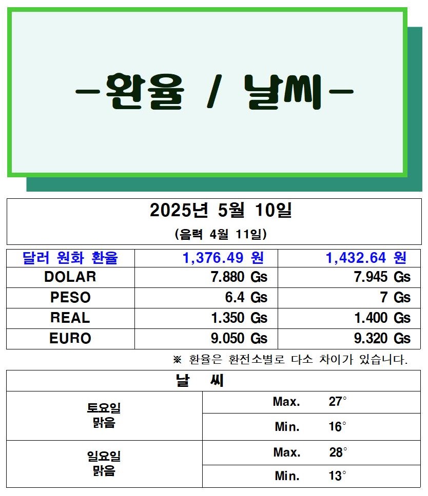 주요 옥수수 재배 지역인 알토 파라나(Alto Paraná), 이타푸아(Itapúa), 카과수(Caaguazú), 카닌데유(Canindeyú)에서 2025년 1월과 2월에 발생한 장기간의 가뭄과 고온 현상은 파종 작업을 지연시키고 작물의 초기 생육 단계를 저해했다. 3월 하반기에 풍부한 강우로 인해 토양 수분 부족 현상이 부분적으로 해소되었지만, 기상 예보는 작물의 후기 생육 단계인 5월에 평균 이하의 강우량을 예측하고 있어 수확량에 부정적인 영향을 미칠 가능성이 높다.