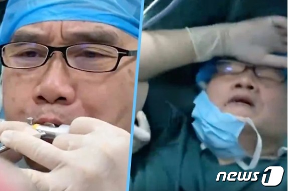 외과의사 중씨가 폐에 공기를 불어넣는 모습과 실신한 모습