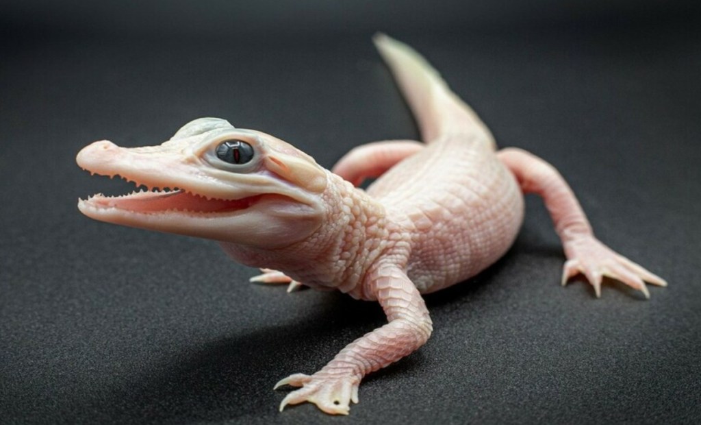 백변종은 악어에게서는 매우 희귀하게 나타나는 유전적 변종으로, 색소가 완전히 결여된 알비노와는 다르다.