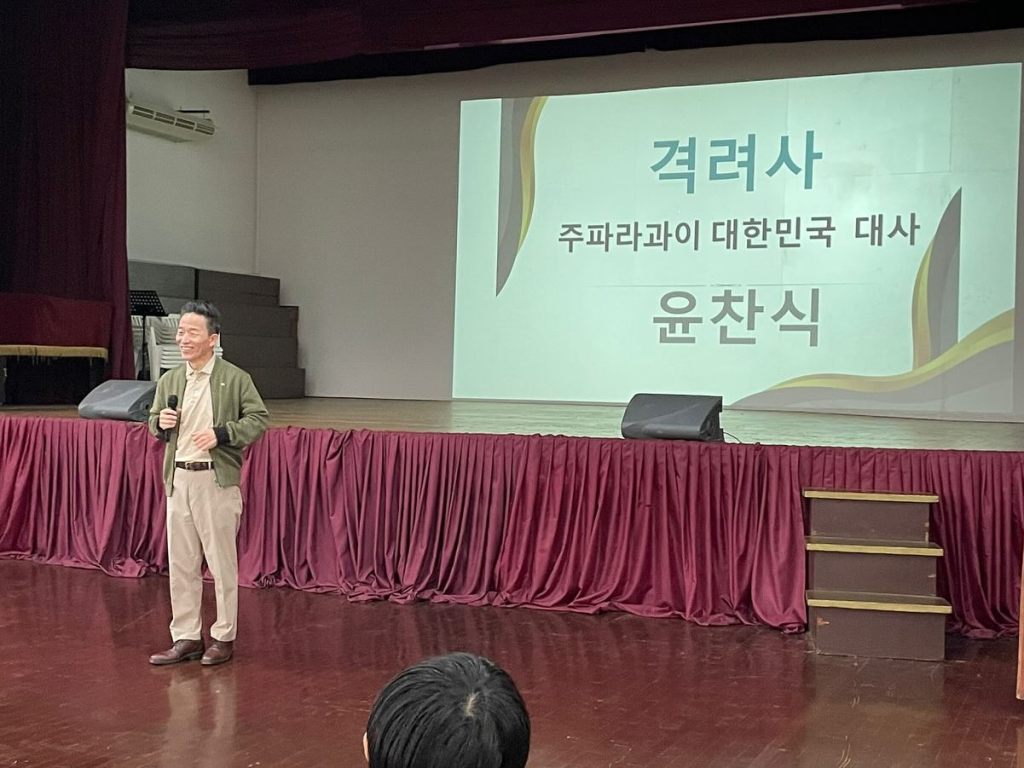 윤 대사는 격려사를 통해 한글학교 교사진 및 학생들에게 주인의식을 갖고 한국인으로서의 자부심을 잊지 말 것을 격려했습니다.