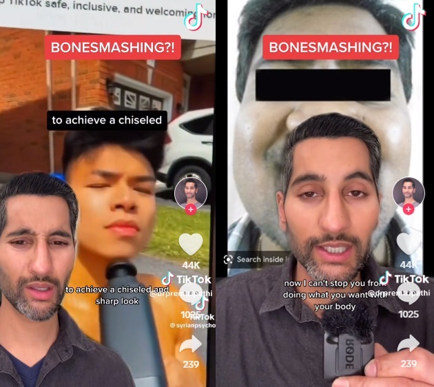 캐나다 토론토의 한 틱톡커는 “얼굴 구조를 개선하기 위해 뼈를 부수는 실험을 해왔다”고 말했다. 이에 많은 누리꾼들은 그의 전후 사진에서 보이는 차이는 단순히 조명이 좋아진 결과일 뿐이라며 그를 비난하기도 했다.
