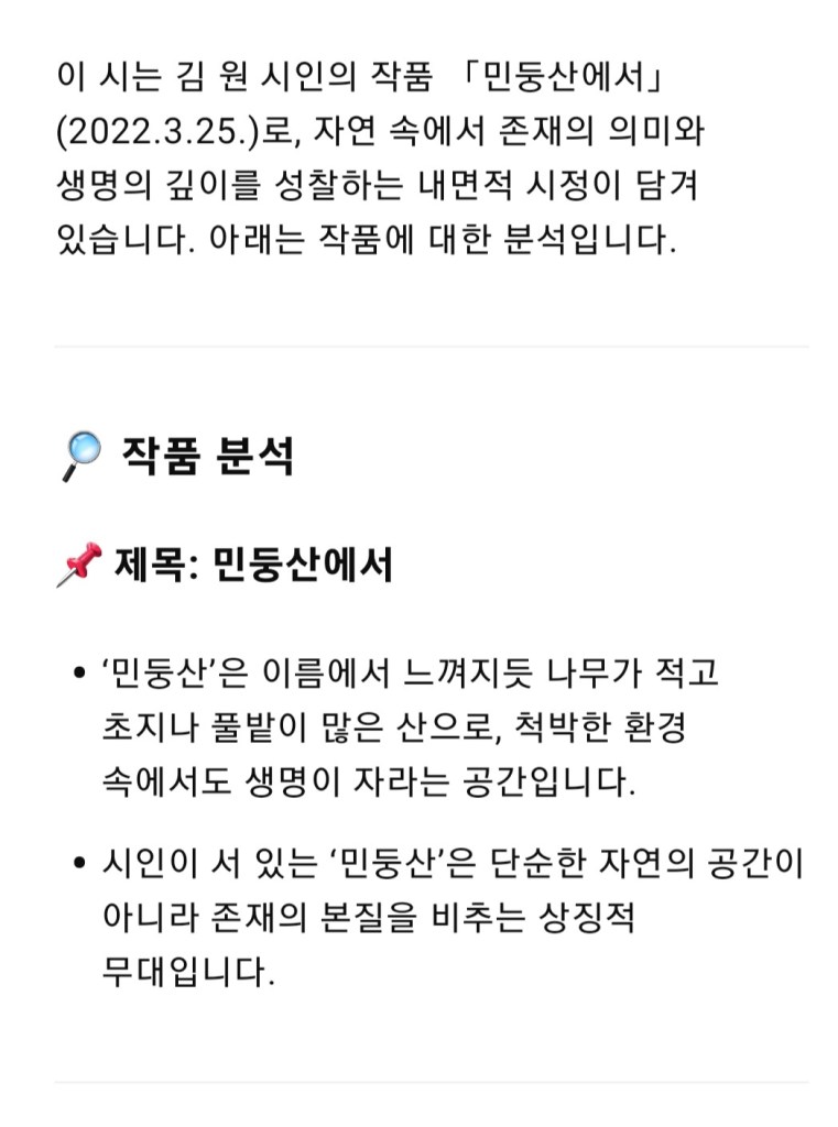 오늘부터 연재하여 드릴 연재 시 *민둥산에서*작품에 대한 서촌 김원 시인의 말씀입니다.