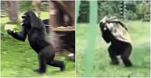 갑자기 퍼붓는 비를 피하기 위해 우리를 향해 달려가는 고릴라의 흥미로운 모습이 공개됐다.