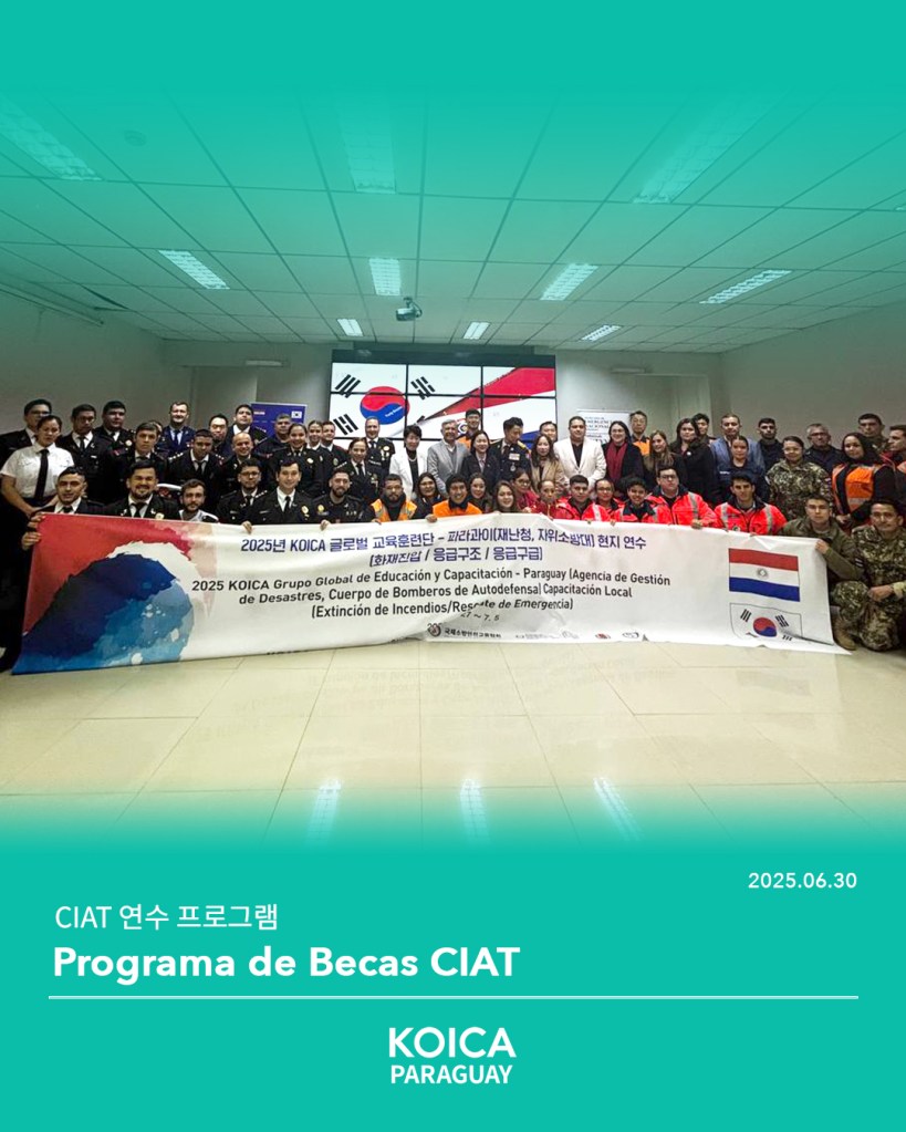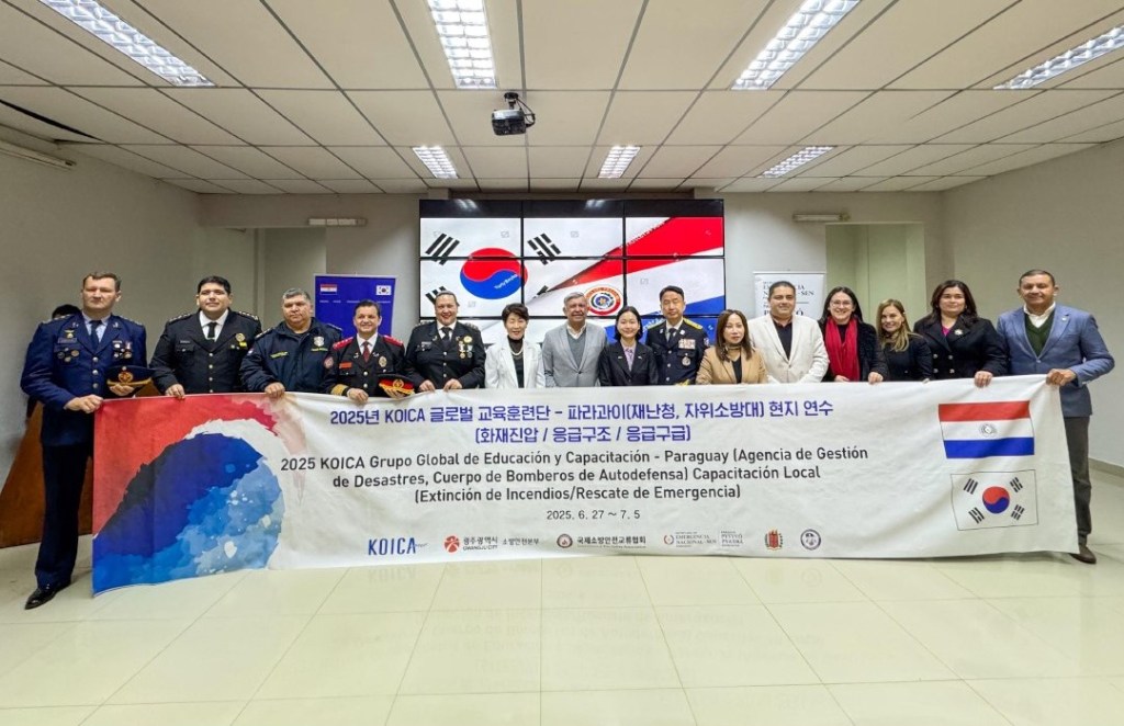 이번 지식 공유 프로젝트는 KOICA가 더 나은 미래를 위한 역량개발(CIAT) 장학 프로그램 아래 재정 지원하며, 광주광역시 소방안전본부가 파라과이 국가재난사무국(SEN)과 자위소방대의 역량 강화를 위해 실행기관으로서 진행하였습니다.