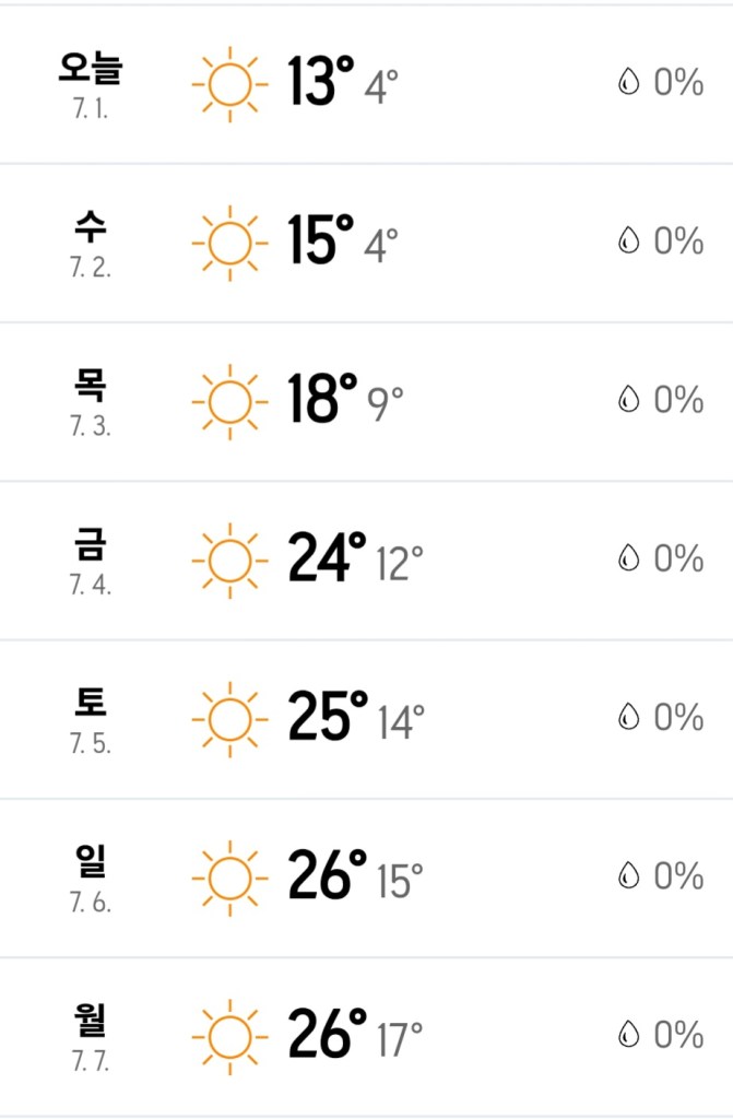 7월 1일은 전국적으로 매우 낮은 기온이 예상되며 , 4개 지역에서는 0~1°C의 최저 기온이 예상된다.