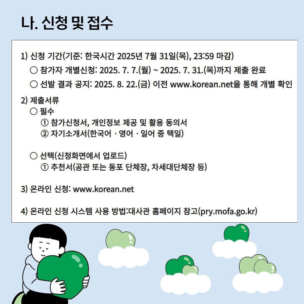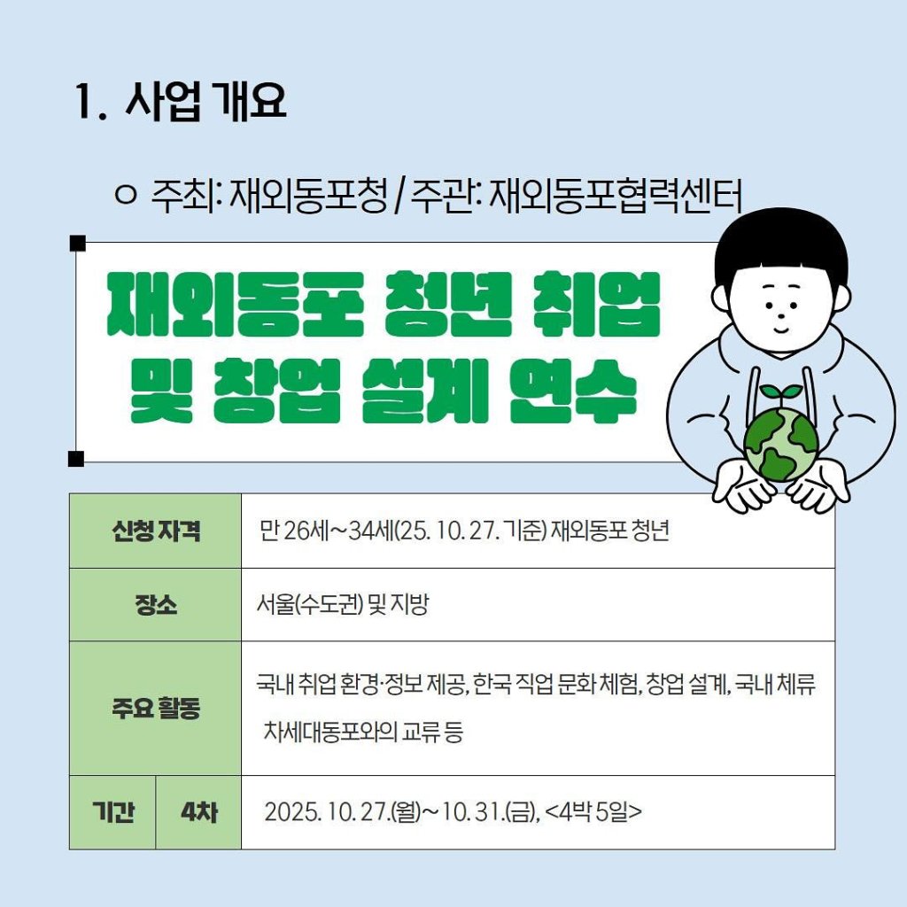 2025년 차세대동포 모국 초청연수 청년 4차 연수에 많은 관심과 참여 바랍니다.