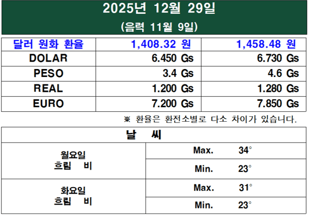 아순시온 시청은 연말까지 이 같은 이동 수요가 지속될 것으로 보고, 승객들의 안전한 여행을 위해 터미널 내 질서 유지와 버스 배차 간격 조절 등 행정력을 집중할 방침이다.