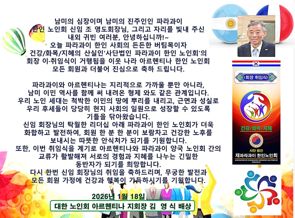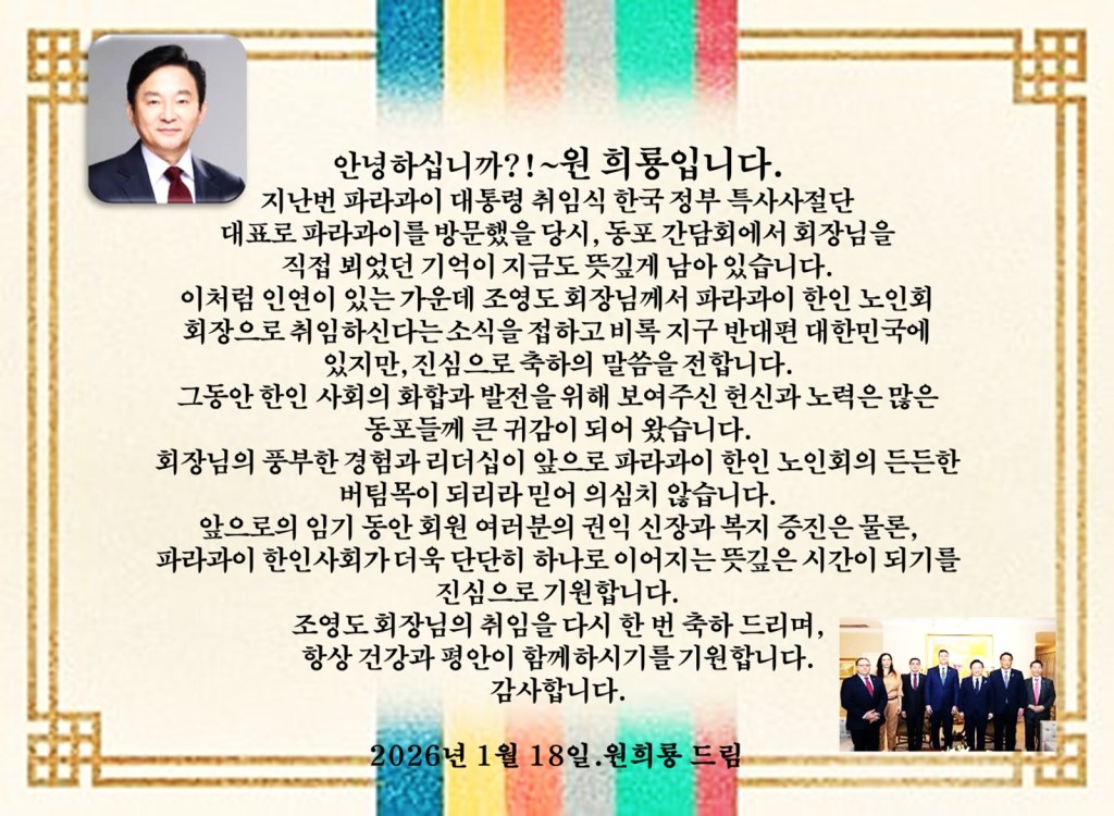 파라과이 한인사회의 뿌리이자 정신적 지주인 사단법인 재파 한인노인회가 새로운 도약의 닻을 올렸다.