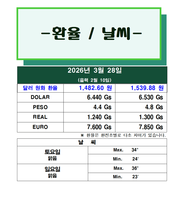 2026년 3월 27일, 산페드로(San Pedro)주 과하위비(Guajayvi) 지역에서 생산된 하스 아보카도 5,075kg이 아르헨티나로 출하되었다.