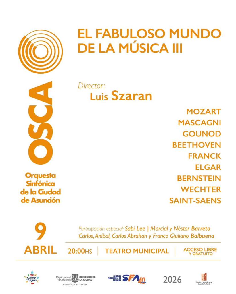 이번 공연은 아순시온 시립교향악단(OSCA)이 주최한 ‘El fabuloso mundo de la música III’ 시리즈의 마지막 무대로, 지휘자 루이스 사라란(Luis Szarán)의 지휘 아래 진행되었다.