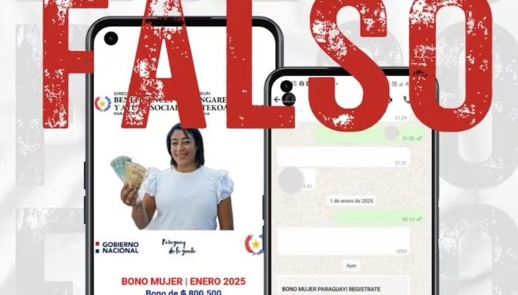 가장 흔한 사기 수법 중 하나는 “여성 보조금”이다. 사기꾼들은 WhatsApp 메시지를 통해 80만 과라니 상당의 보조금을 제공한다는 내용과 함께 링크를 보낸다. 그러나 해당 웹사이트는 개인 정보를 요구하며, 심지어 악성 파일을 다운로드하도록 유도하여 피해자의 기기를 감염시킬 수 있다.