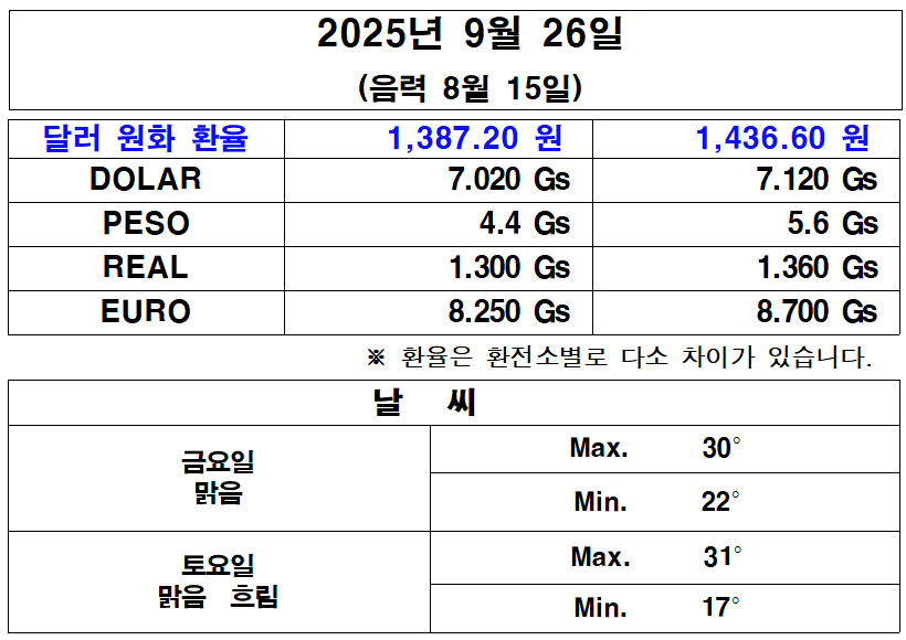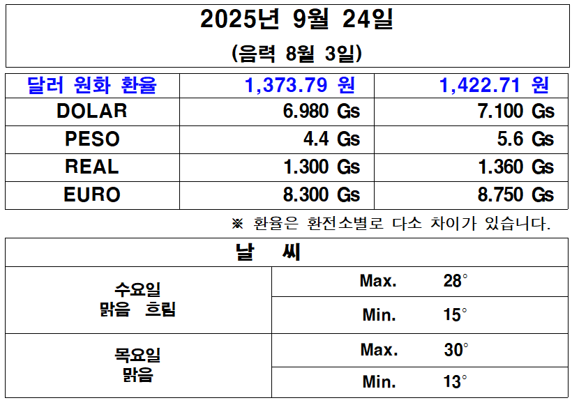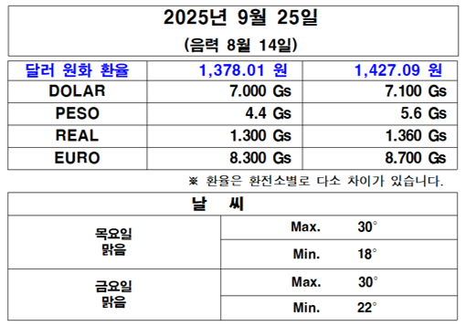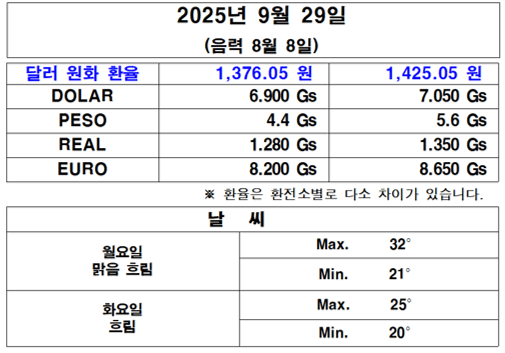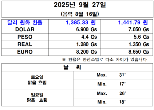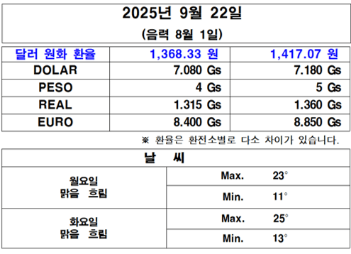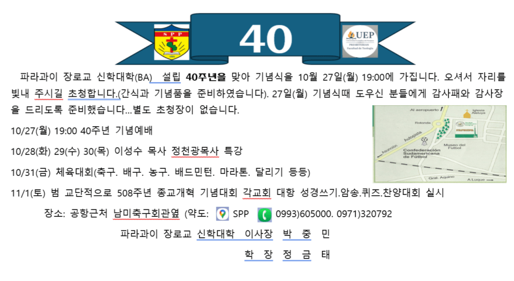 아름다운 Caacupe시의 정취 속에서 뜻깊은 하루를 함께 나누고자 합니다.
