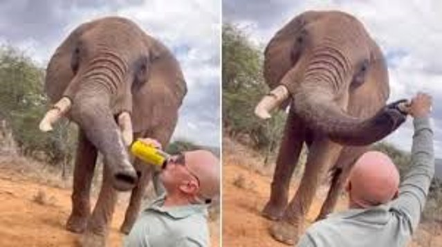 문제의 남성은 야생동물 보호구역에서 현지에서 인기 있는 맥주 ‘터크커’ 캔을 조금 마신 뒤 나머지를 코끼리 코에 들이부었다.