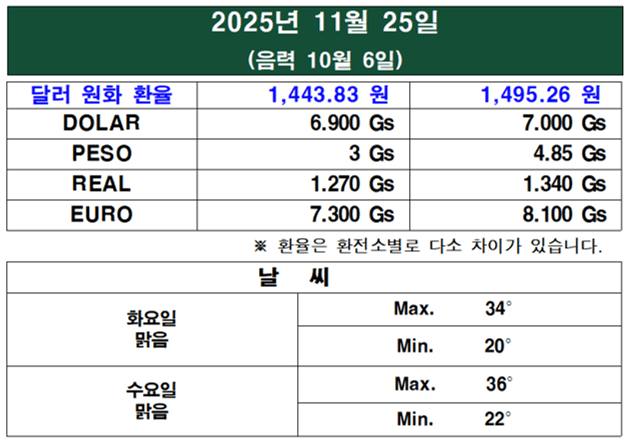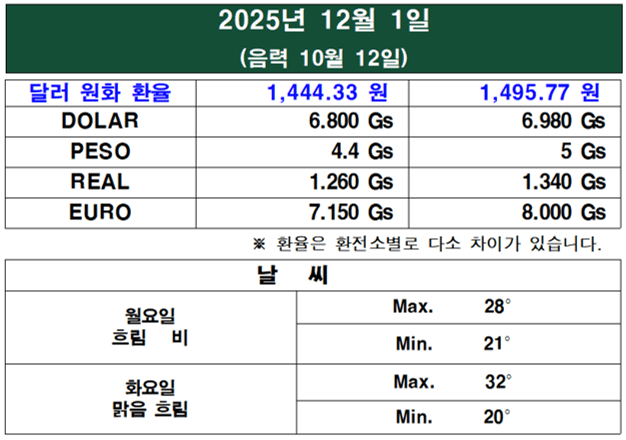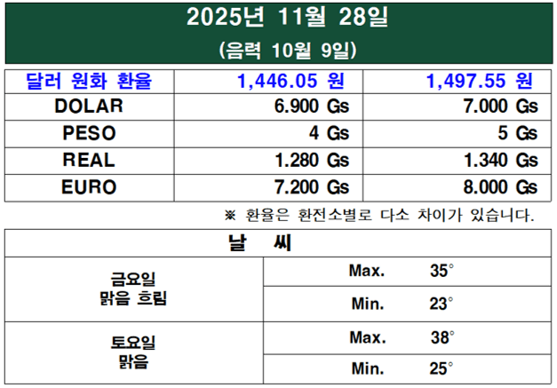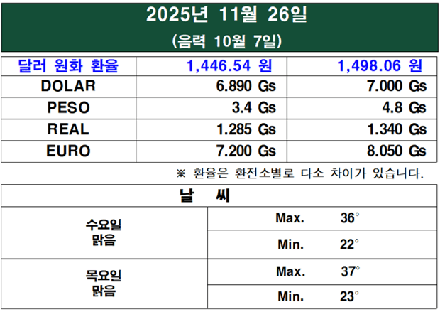 11월 마지막 주, 파라과이를 중심으로 멕시코, 아르헨티나 등 주요 라틴 아메리카 국가들의 정치, 경제, 사회 동향을 포함하여 기사를 재구성했다.