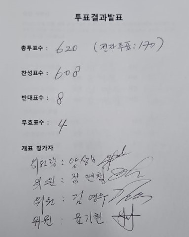 상기와 같이 32대 한인회장 찬반투표 선거결과로 32대 한인회장으로 최도선회장이 당선 되었습니다.