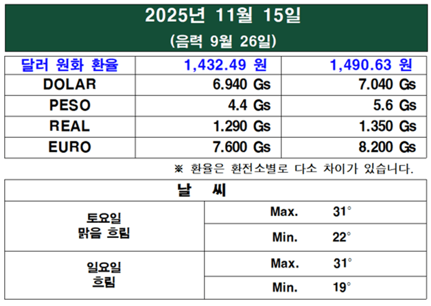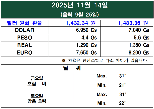 - 인상 기준: 이 금액은 **2025년 7월부터 적용된 최저임금의 25%**로 조정된 것이다. 파라과이에서는 매년 7월에 중앙은행이 발표한 1년간의 누적 인플레이션율(이번 인상률은 3.5%)에 비례하여 최저 임금이 업데이트된다.